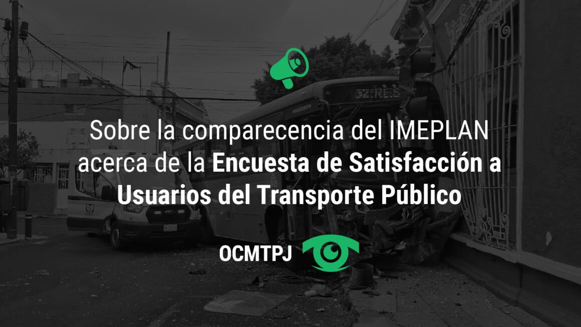 Desde el Observatorio Ciudadano de Movilidad y Transporte Público de Jalisco manifestamos nuestra profunda preocupación por lo expuesto durante la comparecencia de la directora del IMEPLAN, Patricia Martínez, ante el Congreso del Estado, en relación con la Encuesta de Satisfacción a Usuarios del Transporte Público. Lejos de fortalecer la discusión pública sobre la calidad del servicio, dicha comparecencia evidenció una encuesta técnicamente endeble, jurídicamente utilizada como simulación y políticamente funcional para justificar un aumento tarifario previamente decidido.
